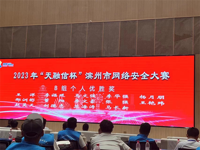 7月21日,2023年“天融信杯”濱州市網(wǎng)絡安全大賽決賽在渤海先進技術研究院舉行,公司代表隊最終獲團體三等獎,公司互聯(lián)信息部信息中心信息安全管理員崔乘耀獲個人二等獎,公司互聯(lián)信息部信息中心軟件開發(fā)技術員邢訓彬、王艷瑋獲個人優(yōu)勝獎。