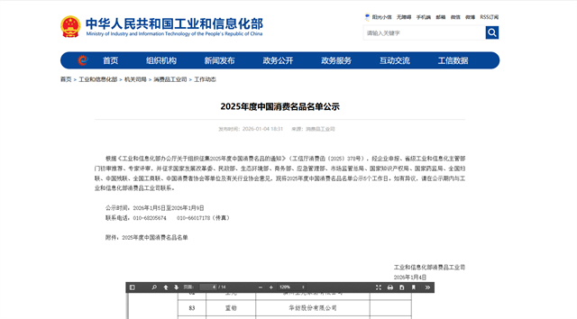 導(dǎo)讀:近日,工業(yè)和信息化部公布了2025年度中國消費名品名單。